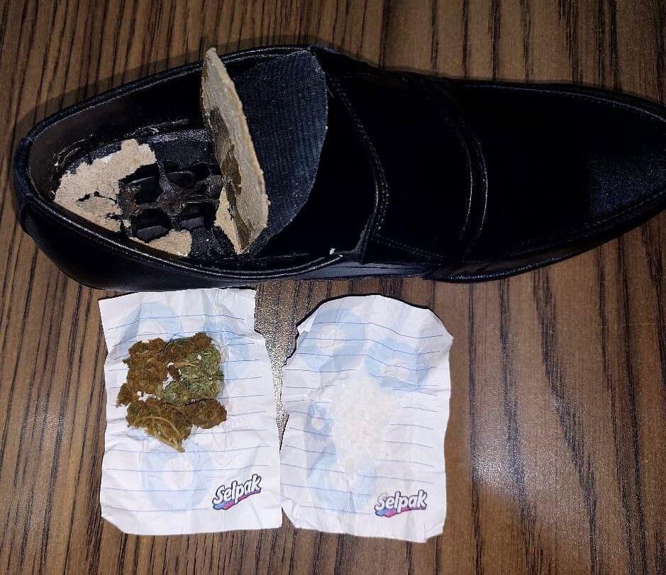 Bildirilib ki, həbs olunmuş şəxsə qohumu tərəfindən gətirilmiş sovqata baxış keçirilən zaman orada olan ayaqqabının içərisində xüsusi üsulla gizlədilmiş 2 ədəd bükülüdə 2,810 qram qurudulmuş marixuana və 1,233 qram metamfetamin aşkar olunub.