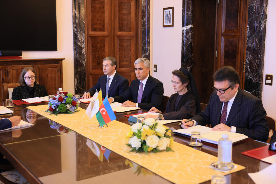 Day.Az AZƏRTAC-a istinadən xəbər verir ki, Vatikanda keçirilən görüşdə sənədi Azərbaycan Respublikası Prezidentinin köməkçisi, Heydər Əliyev Fondunun icraçı direktoru Anar Ələkbərov və Vatikan şəhər-dövlətinin qubernatorluğunun prezidenti, rahibə Raffaella Petrini imzalayıblar.