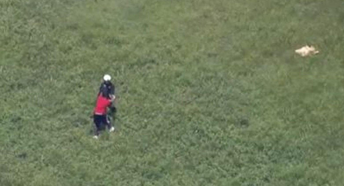 Uzun müddət müqavimət göstərən şübhəlinin təslim olmaq niyyətində olmadığını görən polislərdən biri heikopterdən tullanaraq aşağıdakı həmkarının köməyinə qaçıb. Yalnız bundan sonra şübhəlini nəzarətə götürmək mümkün olub.