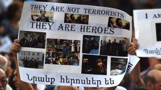 "Sasna tsrer" (Sasunlu çılğınlar) adlı silahlı dəstənin KPX alayını saxladığı iki həftə ərzində dəstənin hərəkətlərinə heç bir qiymət verməyən Ermənistan prezidenti bəyan edib ki, öz niyyətlərini vətənpərvərlik və sosial ədalət çağırışları arxasında gizlədərək, silahlı qrupun hərəkətləri "terrorist sayağı" olub.
