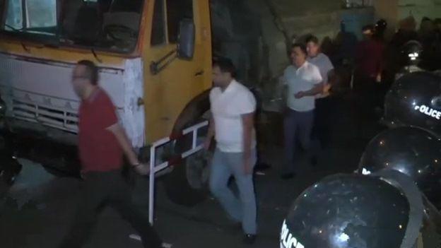 Sosial şəbəkələrdə yayılan video görüntülərdə 40-a yaxın mülki geyimli şəxsin "qadağan olunmuş əraziyə" keçdiyi həkk olunub. Şahidlər məhz onların nümayişçilərə, dinc əhaliyə və jurnalistlərə hücum etdiyini söyləyir