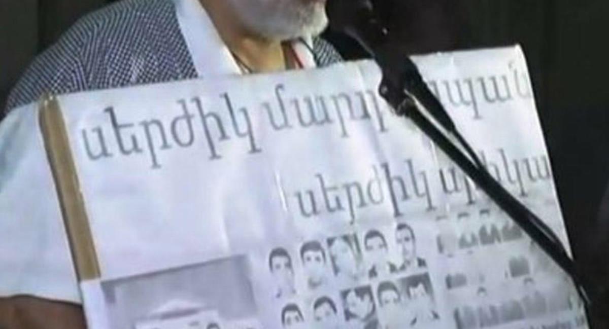 Varqdes Qaspari mikrofona üzərində "Serjik qatildir!" yazılmış şüarla çıxıb. Şüarda həmçinin 2008-ci ilin mart ayının 1-də öldürülmüş şəxslərin və Ermənistan ordusunun özbaşınalıq nəticəsində itirdiyi hərbçilərinin şəkilləri əks etdirilmişdi.