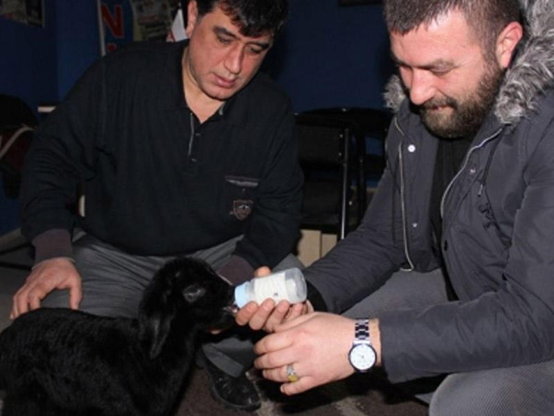 Ərzurumda ölmək üzrə olduğu üçün kəsilən qoyunun qarnından sağ çıxarılan quzu "ana" deyə qışqıraraq hər kəsi şok edib.