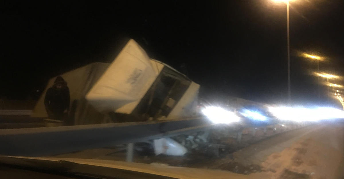 Bişmiş kərpicdən ibarət yükün ağırlığından aşdığı bildirilən avtomobil dəmir arakəsmələrə çırpılıb.