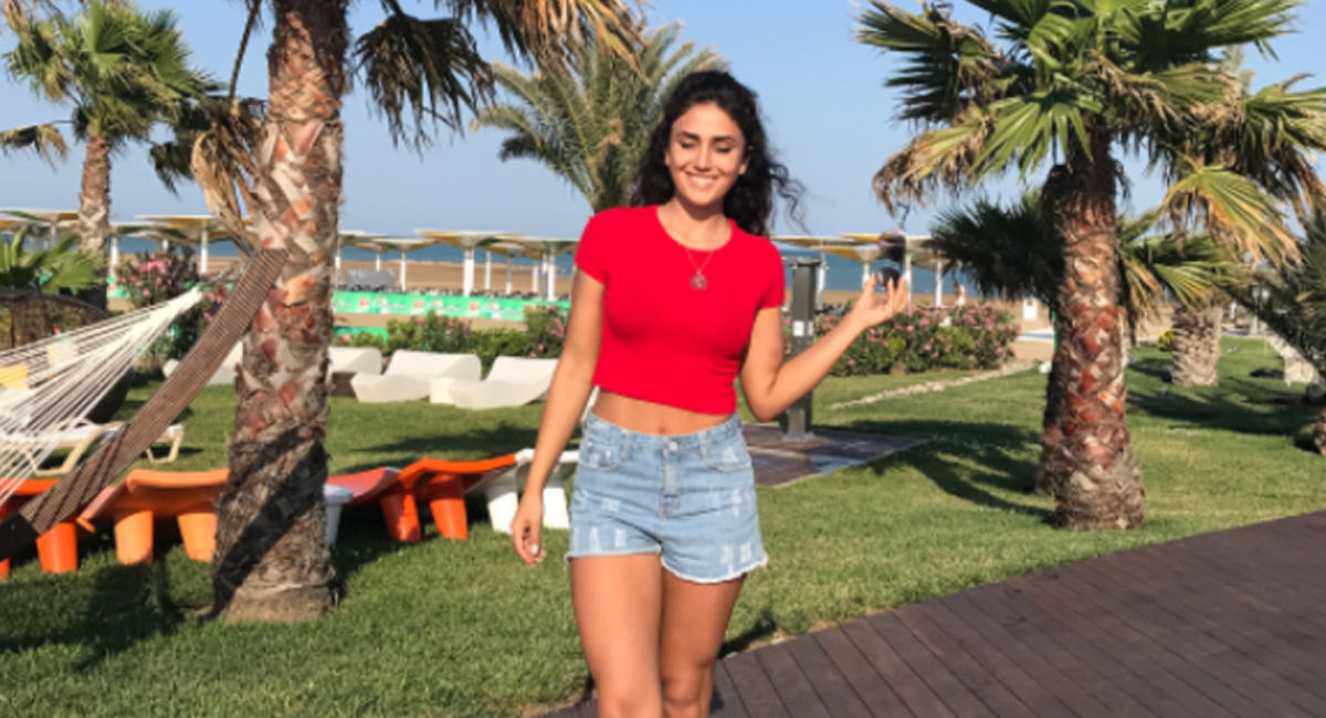Özünəməxsus seksual və zərif tərzi ilə daim diqqət mərkəzində olmağı bacaran Pərvin Abıyeva çimərlik üçün qısa cins şort və qırmızı top seçib.