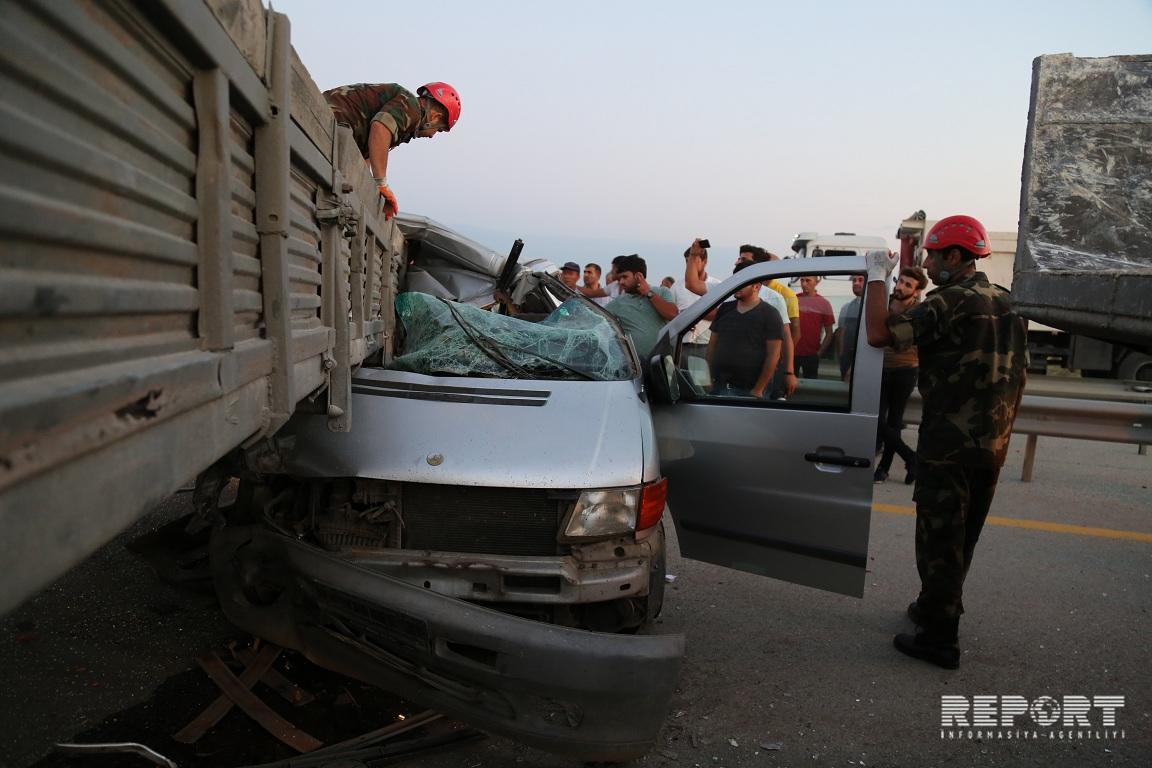 Qəza üç avtomobilin toqquşması nəticəsində baş verib. Yol ilə hərəkətdə olan "Kamaz" markalı qoşqulu yük maşınının sürücüsü sükan arxasında yuxulayaraq öndə gedən digər "Kamaz"a, ən sonda gələn "Mercedes" markalı mikroavtobus isə qoşqulu yük maşınına çırpılıb. Nəqliyyat vasitəsində sürücü ilə birgə ümumilikdə 9 nəfər olub. onlardan 3-ü hadisə yerində ölüb. Daha bir nəfər sonradan xəstəxanada keçinib.