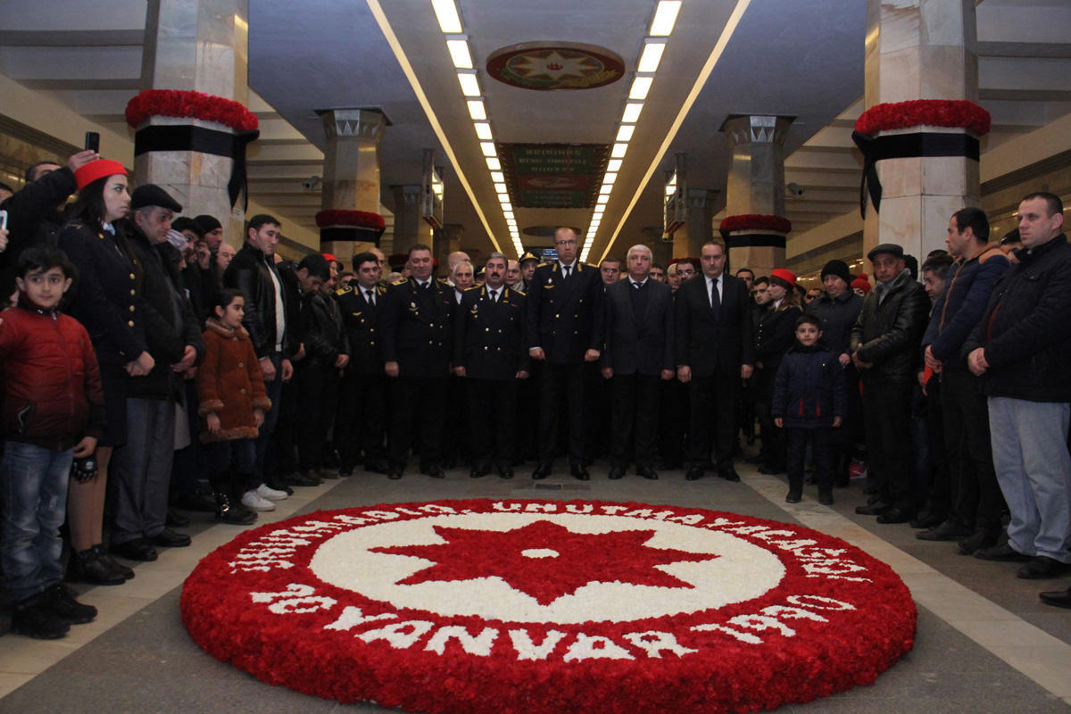 Saat 12:00-da metronun "20 yanvar" stansiyasında anım mərasimi keçirilib. Həmin vaxt bütün stansiyalarda və tunellərdə qatarların və sərnişinlərin hərəkəti dayandırılıb, 1 dəqiqəlik fit verilib və şəhidlərin əziz xatirəsi yad edilib.