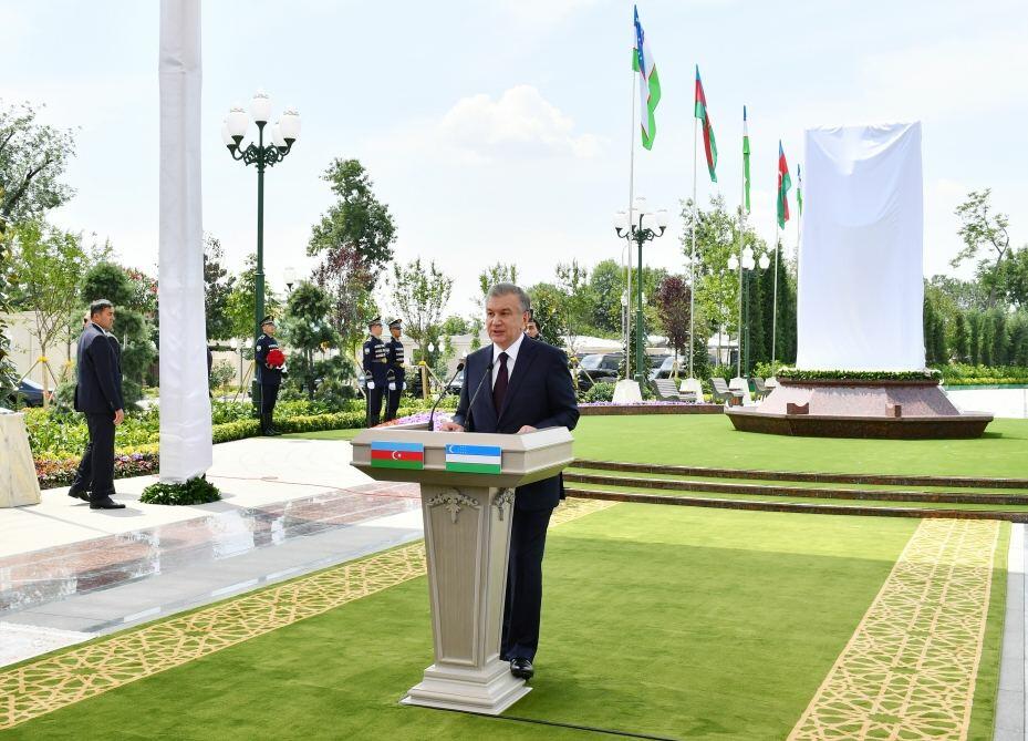 Hörmətli mərasim iştirakçıları, bizim ölkələrimiz arasında dostluq münasibətlərinin, iki xalqın tarixi əlaqələrinin inkişafına və möhkəmlənməsinə Heydər Əliyevin böyük töhfəsini xüsusi qeyd etmək istərdim. Onunla Özbəkistanın rəhbərləri Şərəf Rəşidoviç Rəşidov, daha sonra İslam Abduqəniyeviç Kərimov arasında etimada əsaslanan səmimi münasibətlər yaranmışdı. Bizim liderlər arasında dostluq iki ölkənin və iki qardaş xalqın sıx qarşılıqlı əlaqə saxlamasına, fəal mübadilələri, o cümlədən humanitar mübadilələri inkişaf etdirməsinə imkan verib. Azərbaycan xalqının Ümummilli Lideri özbək xalqına həmişə böyük hörmətlə yanaşırdı. Hərtərəfli savadlı və əsl ziyalı insan olan Heydər Əliyev bizim tariximizə, mədəniyyətimizə və ənənələrimizə səmimi heyranlığını bildirirdi. Məsələn, 1996-cı ildə Daşkənddə olarkən, Heydər Əliyev Teymurilər Tarixi Muzeyini ziyarət edərək Fəxri qonaqlar kitabında yazdığı qeyddə xüsusi olaraq vurğulamışdı: "Əmir Teymurun xidmətlərinə, onun tarixi irsinə qayğıkeş, hörmətli münasibətə görə Özbəkistan xalqı çox sağ olsun". Bu, yüksək mənəviyyat və müdriklik təzahürüdür".