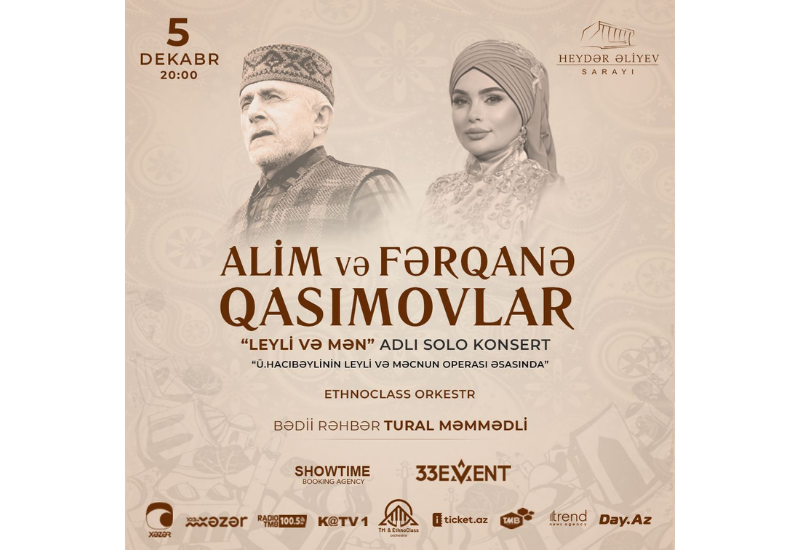 В Баку во Дворце Гейдара Алиева, 5 декабря в 20:00 состоится концерт выдающегося дуэта исполнителей мугама, отца и дочери - всемирно известного, народного артиста Азербайджана Алима Гасымова и заслуженной артистки Фярганы Гасымовой под названием "Leyli və Mən", организованный 33Event, сообщает Day.Az.
