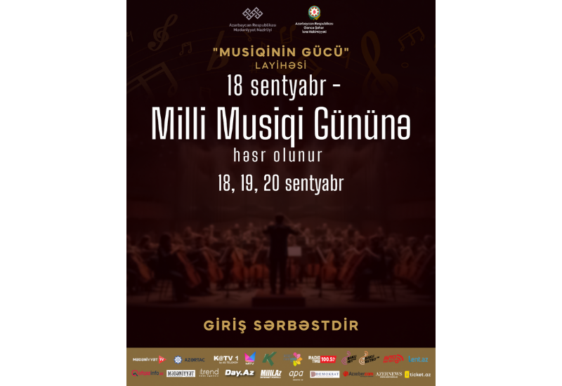 В Гянджинской государственной филармонии имени Фикрета Амирова 18-20 сентября в 18:00 будет представлен проект "Сила музыки", посвященный Дню национальной музыки, сообщили Day.Az в пресс-службе филармонии.