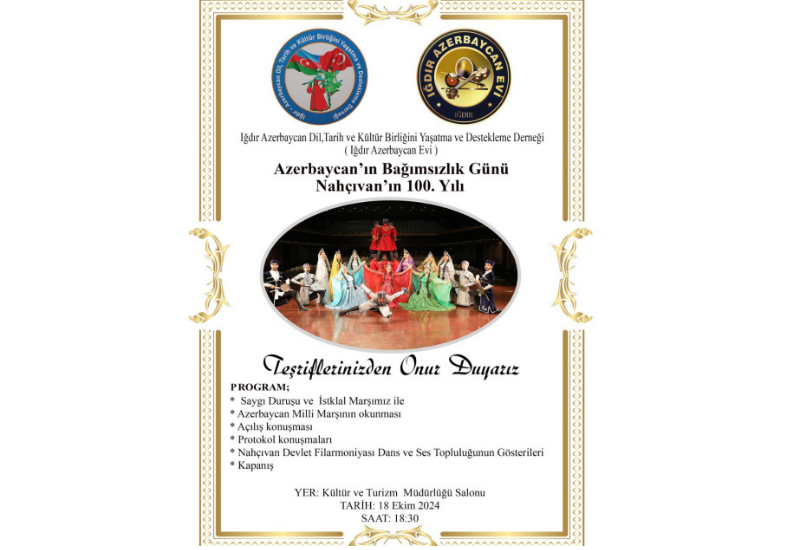 В приграничной с Азербайджаном турецкой провинции Ыгдыр 18 октября состоится торжественное мероприятие, приуроченное к 100-летию образования Нахчыванской Автономной Республики.