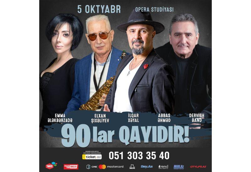 В этот вечер для вас выступят - харизматичный Ильгар Хаял, любимец публики Аббас Ахмед, очаровательная Эмма Алекперзаде, проникновенный Эльхан Шыхалиев, драйвовая группа Dervish Band и другие яркие артисты, которые вернут вас в атмосферу золотого десятилетия.