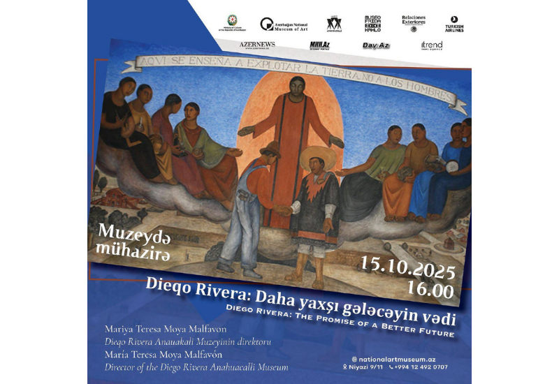 15 октября в 16:00 в Национальном музее искусств Азербайджана состоится лекция на тему "Диего Ривера. Обещание светлого будущего". В ходе лекции, которую проведёт Мария-Тереза Мойя Малфавон, директор Музея Диего Риверы "Анауакалли", будет представлена подробная информация о выставке "Диего Ривера. Обещание светлого будущего".