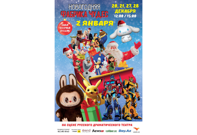 20, 21, 27, 28 декабря - только на сцене Азербайджанского государственного академического русского драматического театра состоится музыкальное представление под названием "Новогодняя фабрика чудес"