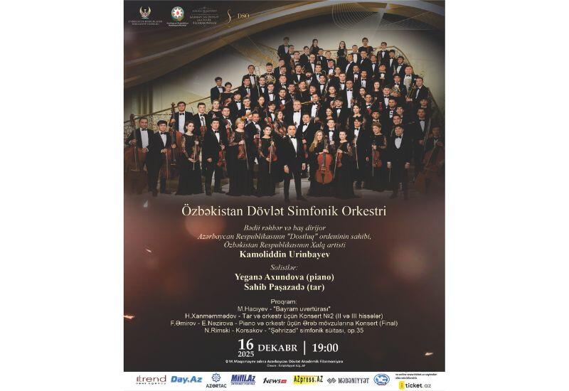16 декабря в 19:00 на сцене азербайджанской государственной академической филармонии имени Муслима Магомаева состоится концерт в рамках Дней культуры Республики Узбекистан.