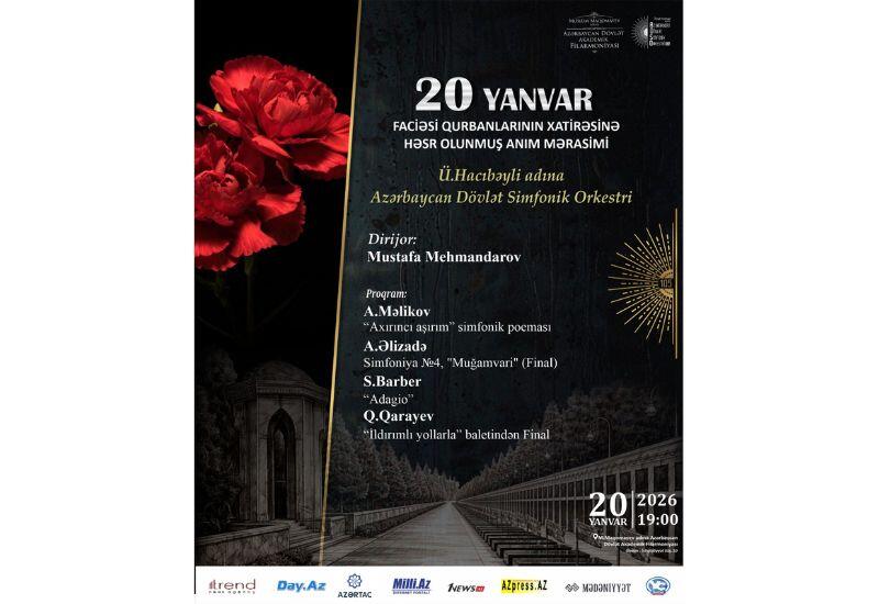 В программе памятного вечера будут представлены ценные образцы азербайджанской и мировой классической музыки. Среди исполняемых произведений - финальная сцена из балета Гара Гараева "Тропою грома", симфоническая поэма Арифа Меликова "Последний перевал", финальная часть IV симфонии Агшина Ализаде "Muğamvari", а также знаменитое произведение Сэмюэля Барбера "Адажио", занимающее особое место в программе.