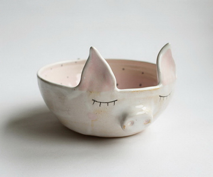 Польская художница Марта Туровска создает причудливые керамические миски и тарелки, которые напоминают наших любимых животных - кошек, ежей, китов.