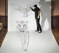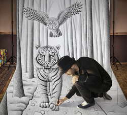 Бельгийский художник Бен Хайне продолжает свои эксперименты в области визуализаций. Теперь он представил серию огромных 3D-рисунков, выполненных карандашом. После создания рисунка художник проникает "внутрь" созданной им реальности.