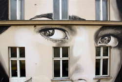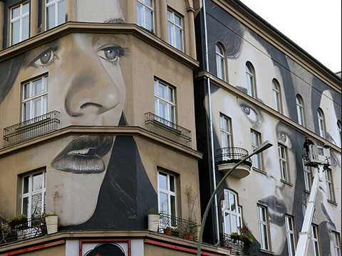Уличный художник Роне нарисовал эту невероятную пятиэтажную фреску на фасаде жилого дома в Берлине. Художнику из Мельбурна потребовалось пять дней, чтобы создать три фотореалистичные изображения модели Терезы Оман.