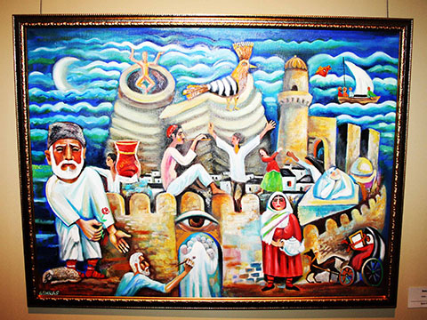 Изображение бакинской махалля с представителями отечественного шоу-бизнеса пользовалось особой популярностью у гостей вечера. Большой интерес вызвали и образы райских птиц и золотых рыбок, встречающиеся на ряде полотен и считающиеся символом счастья.