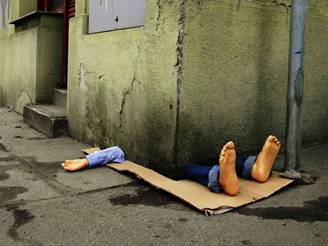 Fra Biancoshock - миланский уличный художник. Свой жанр называет Эфемерализмом. За свою карьеру создал свыше 400 работ на улицах Италии, Испании, Португалии, Венгрии, Малайзии и Сингапура.