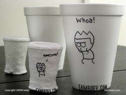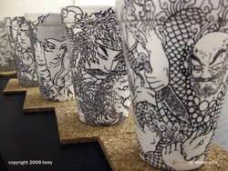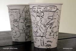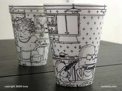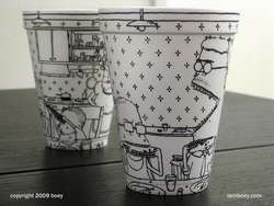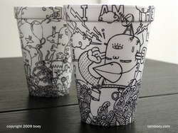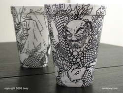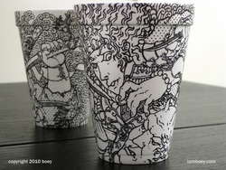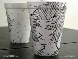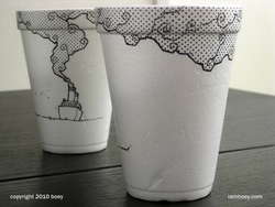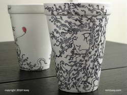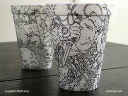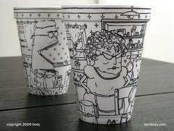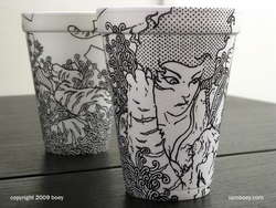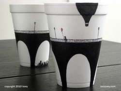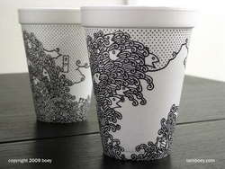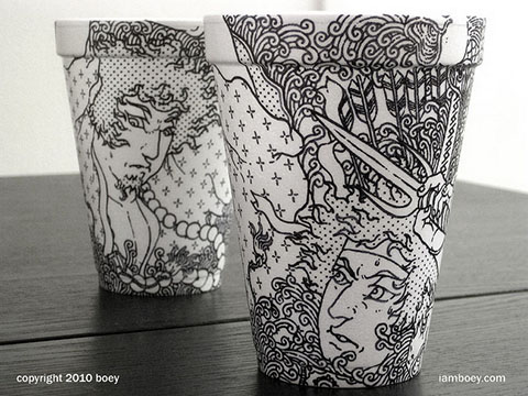 Художник Чеминг Бои из Малайзии, в настоящее время проживающий в Ньюпорт Бич, штат Калифорния, разрисовывает белые пенопластовые стаканчики из-под кофе с помощью черного маркера. За шесть лет, которые юноша посвятил этому прибыльному и экологичному занятию, талантливо расписанная одноразовая посуда стала неотъемлемой частью его жизни - ведь его дом превратился и в мастерскую, и в склад, и в магазин уникальных товаров, продажей которых художник зарабатывает на жизнь.