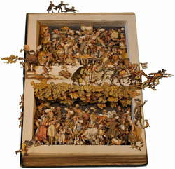Ножницы, клей и старые книги стали материалами для творчества дизайнера Керри Миллер, которая дает им новую жизнь, создавая удивительные композиции из иллюстраций, которые прячутся в тексте.