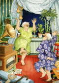 Финская художница Инга Лёёк создала серию картин про двух забавных подруг, которые, несмотря на свой почтенный возраст, отрываются по полной. В них столько энергии и юношеского задора, что даже становится завидно.