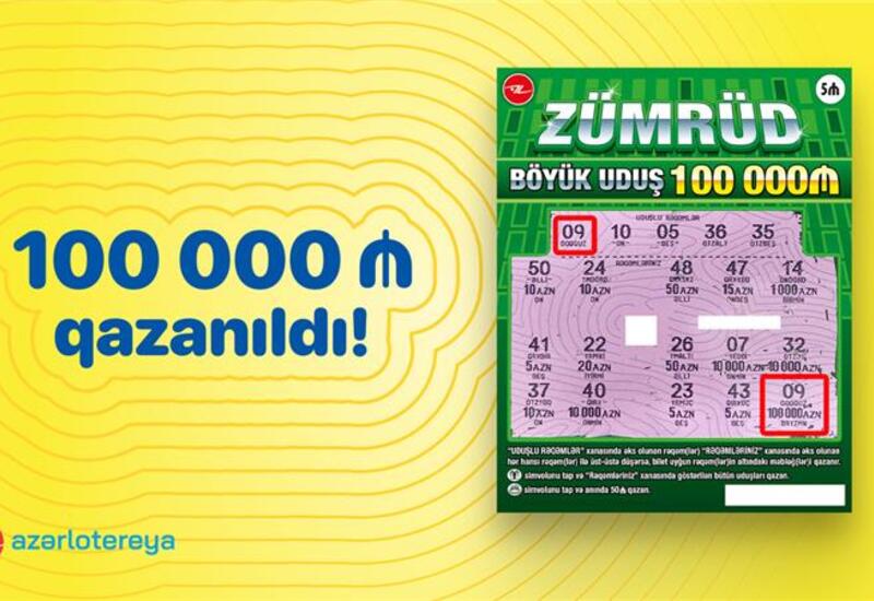 В моментальной лотерее "Zümrüd", входящей в серию игр "Poz-Qazan", организованных легальным лотерейным оператором и оператором спортивных ставок страны "Azərlotereya", был выигран очередной крупный приз - 100 000 манат.