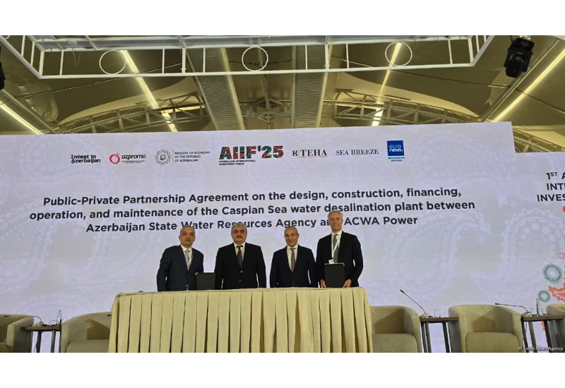 Стороны также подписали Соглашение о государственно-частном партнёрстве по проектированию, строительству, финансированию, эксплуатации и техническому обслуживанию опреснительного завода на Каспийском море. Документ был подписан Зауром Микаиловым и Марко Арчелли.