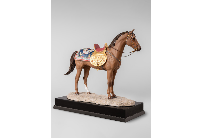 Карабахский конь в этом прочтении - образ силы, выносливости и благородства. Художники Lladró стремились передать живой характер породы и её статность. В работе заметна скрупулёзная проработка анатомии, внимание к линии профиля и к выразительности взгляда, ощущается динамика силуэта. Эти качества делают образ узнаваемым и эмоционально убедительным.