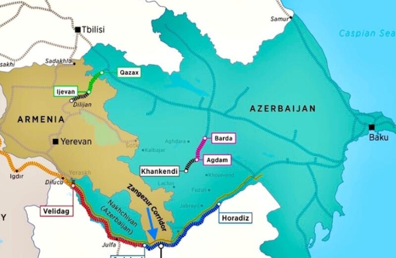 Железная дорога Барда-Агдам-Ханкенди играет роль главных логистических ворот Карабаха. Эта линия имеет стратегическое значение с точки зрения восстановления грузо- и пассажиропотоков в регионе, интеграции новых производственных и торговых зон. Исключать эту реальность из готовых карт - значит превратить свой анализ в ничто, считает Агамирзаев. Линия Горадиз-Агбанд, как азербайджанская часть Зангезурского коридора, образует главную транзитную артерию региона. Любой прогноз, составленный без учета масштаба этого проекта, по мнению эксперта, автоматически теряет свою серьезность.