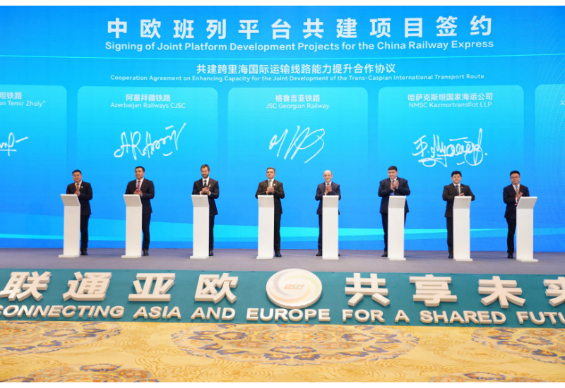 По итогам II Международного форума сотрудничества железной дороги "Китай-Европа" (China-Europe Express Railway Cooperation Forum) в Сиане был подписан документ "Совместная инициатива по качественному развитию Транскаспийского международного транспортного маршрута".
