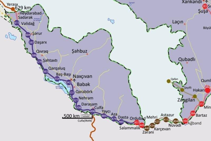 "В целом, нахчыванский участок Зангезурского коридора имеет протяженность 188 километров. Из них с нуля строятся 30 километров. На днях в НАР был дан старт строительству дороги от станции Ордубад до станции Саламмелик на границе с Арменией. Далее будет модернизироваться существующая дорога от Ордубада до Велидага, а также строиться новый путь от станции Велидаг в сторону Турции. Кроме того, будет восстановлена дорога от станции Велидаг в сторону Армении. Тем самым формируется Зангезурский коридор, точнее - восстанавливается. Хотя некоторые участки в сторону Турции будут строиться впервые, в целом этот маршрут в свое время существовал и функционировал от Алята в сторону Джульфы и от Алята в сторону Астары. Этот маршрут был построен во время Второй мировой войны для доставки продовольствия и гуманитарной помощи в СССР, направлявшейся союзниками по лэнд-лизу", - сказал Агамирзаев.
