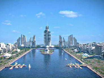 Проект называется "Xаzаr Island" или "Каспийские острова", аналога ему нет во всем мире. Потому что для строительства города, который протянется в море на 8 км, здесь создаются искусственные острова. Город расположится именно на этих островах.