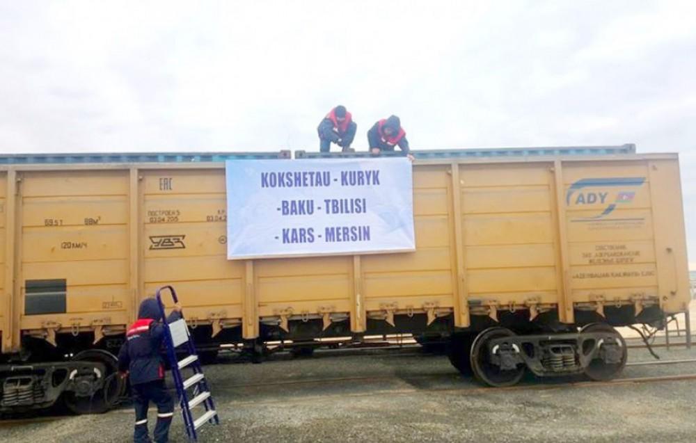 Напомним, что этот поезд, являющийся первым поездом, следовавшим по железной дороге Баку-Тбилиси-Карс, повез из казахстанской станции Кокшетау в Мерсин зерно.