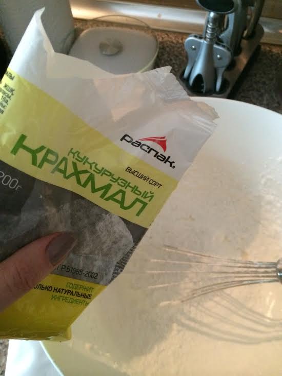 В уже готовую меренгу, при включенном на маленькой скорости миксере добавляем крахмал и уксус.
