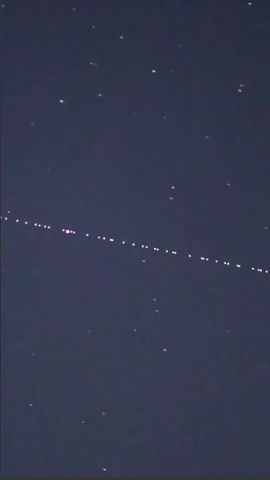 Подобные пролёты спутников Starlink, принадлежащих компании SpaceX, регулярно происходят по всему миру в рамках глобального развертывания системы спутникового интернета.