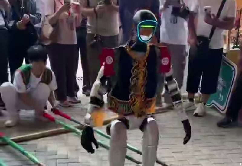 В китайском Гуанси на популярном народном фестивале Саньюэсан, традиционный танец включающий прыжки через бамбуковые палки исполнил андроид.