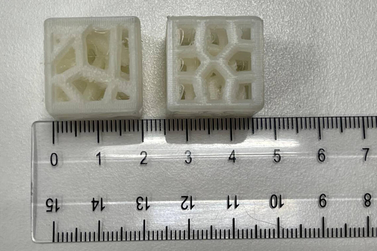 Дополнительно исследователи проверили, как разные структуры выдерживают максимальную нагрузку - до 4000 ньютонов (примерно 400 кг, что соответствует весу, действующему на бедро при прыжке). Наименьшая степень разрушения элементов была у гироидных каркасов - всего 1,2%. У Вороного она составила до 5%, а у BCC-решеток - 7,1%.