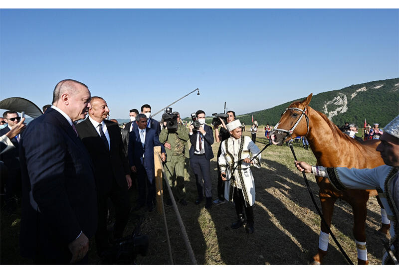 Президенту Турецкой Республики Реджепу Тайипу Эрдогану были подарены одна из древнейших пород лошадей - карабахский конь "Зафар" и композиция "Харыбюльбюль".