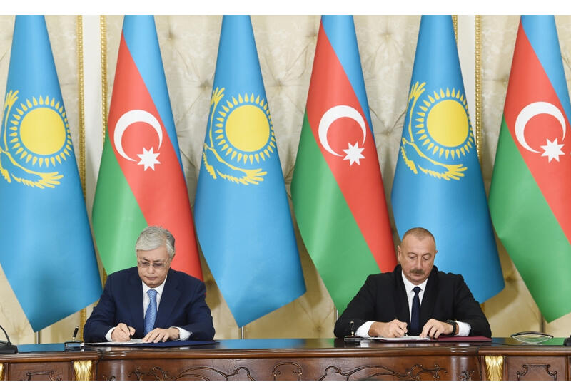 "Декларацию об укреплении стратегических отношений и углублении союзнического взаимодействия между Азербайджанской Республикой и Республикой Казахстан" подписали Президент Азербайджанской Республики Ильхам Алиев и Президент Республики Казахстан Касым-Жомарт Токаев.
