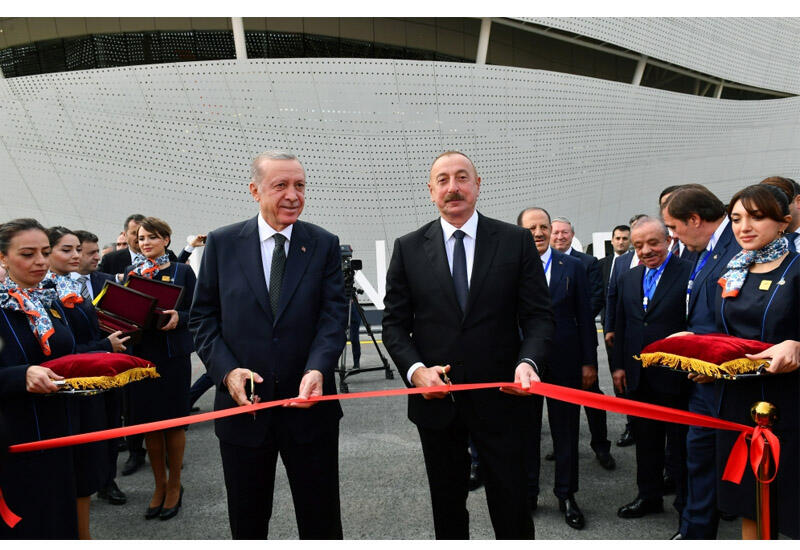 Президенты Азербайджана и Турции разрезали ленту в знак открытия аэропорта.