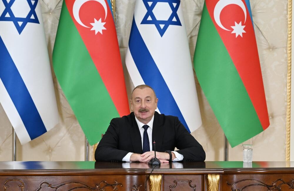 Говоря об угрозах, я также хотел бы с удовольствием отметить наше многолетнее сотрудничество в области оборонной промышленности. Азербайджан уже много лет имеет доступ к современному израильскому оборудованию в этой области, что помогает нам модернизировать нашу обороноспособность и позволяет нам защищать нашу государственность, наши ценности, наши национальные интересы и нашу территориальную целостность.