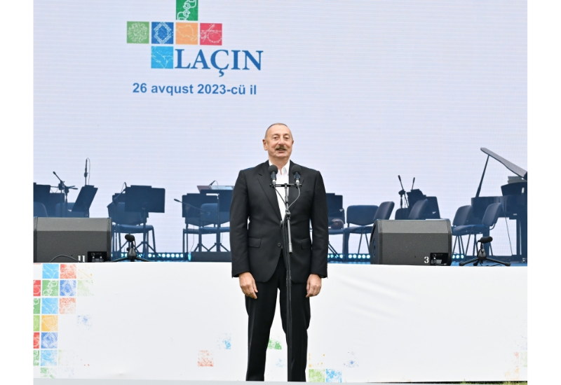 26 августа Президент Азербайджанской Республики Ильхам Алиев и Первая леди Мехрибан Алиева приняли участие в организованном Министерством культуры и специальным представительством Президента в Лачинском районе при поддержке Фонда Гейдара Алиева праздничном мероприятии "День города Лачин", состоявшемся на берегу реки Хакари в городе Лачин.