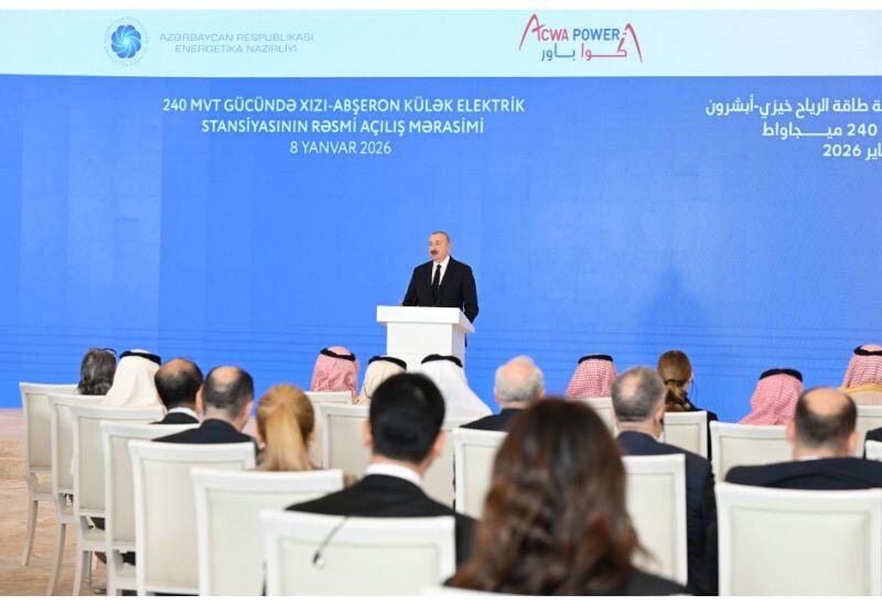 Как передает Day.Az со ссылкой на АЗЕРТАДЖ, об этом, в частности, сказал Президент Азербайджанской Республики Ильхам Алиев, выступая 8 января на церемонии официального открытия ветряной электростанции "Хызы-Абшерон" мощностью 240 МВт, построенной компанией ACWA Power Королевства Саудовская Аравия.