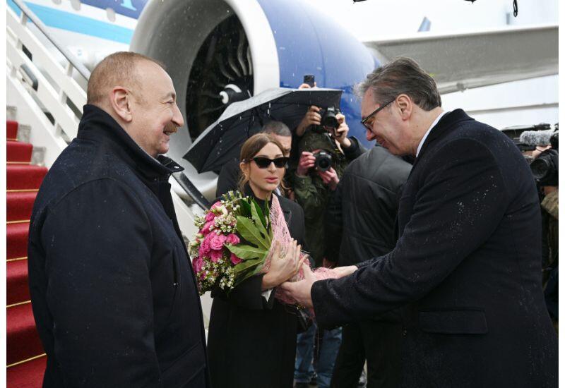 Президента Ильхама Алиева и Первую леди Мехрибан Алиеву встретил Президент Республики Сербия Александар Вучич.