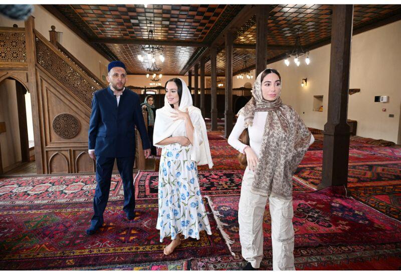 Вице-президент Фонда Гейдара Алиева, учредитель и руководитель Общественного объединения IDEA Лейла Алиева и Арзу Алиева в рамках поездки в город Шеки посетили Ханскую мечеть.