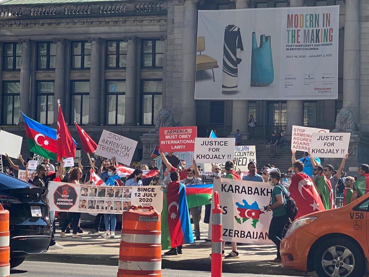 Сегодня в Ванкувере (Канада) прошла акция в знак протеста против провокации вооруженных сил Армении в направлении Товузского района Азербайджана, организованная азербайджанской общиной.