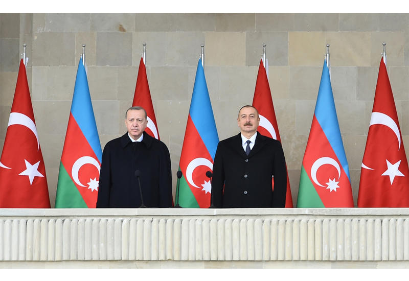 Сегодня исторический день. Сегодня на площади Азадлыг проходит парад Победы. Очень рад, что, приняв мое приглашение, на параде присутствует Президент Турецкой Республики, мой дорогой брат Реджеп Тайип Эрдоган. В то же время в параде участвуют прибывшая из Турции представительная делегация, турецкие солдаты и офицеры. Это еще раз демонстрирует наше единство, дружбу и братство.